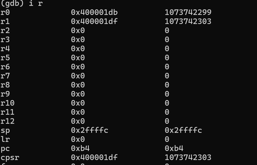 make all ์ํํ gdb๋ฅผ ํตํด ์คํํ์ผ์ runํ ํ ์ ์ง ์ํค์. ๊ทธ๋ผ ํ์จ์ด๊ฐ main() ํจ์๋ฅผ ์คํํ๊ณ ๋๋ฉด ๋ค์ reset handler๋ก ๋์๊ฐ์ ๋ฌดํ๋ฃจํ๋ ๋๋ ๊ฒ์ ํ์ธํ ์ ์๋ค. ๊ทธ๋์ '์ปจํธ๋กค+c' ๋ช ๋ น์ ์ ๋ ฅํ๊ธฐ ์ ๊น์ง ์ข ๋ฃ๋์ง ์๋๋ค.