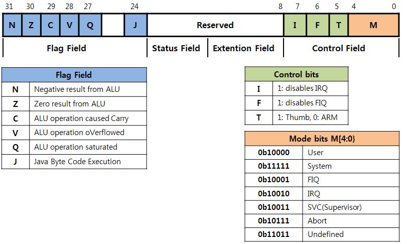 ARM์ CPSR ๋ ์ง์คํฐ์ bit ํ๋๋ฅผ ๋ํ๋ธ๋ค. ํ์ 5bit๋ ํด๋น ๋ชจ๋์ ๋์ ์ํ๋ฅผ ๋ํ๋ด๋ฉฐ 0b10011์ SVC๋ฅผ ๋ํ๋ธ๋ค. ์ด๋ ๊ฒ ๋ชจ๋ ๋ชจ๋๋ค์ ๋ํด์ sp๋ฅผ ์ ํด ์ค๋ค. ์ค์ ๋ณด๋์์๋ sp๋ฟ๋ง์ด ์๋ ํ๋์จ์ด ์์คํ ํด๋ญ ์ค์ , ๋ฉ๋ชจ๋ฆฌ ์ปจํธ๋กค๋ฌ ์ด๊ธฐํ ๊ฐ์ ์ผ๋ค๋ ํ์ํ๋ค. ์ด๊ฒ์ ์ถํ์ Cortex-M3๋ฅผ ๊ณต๋ถํ๋ฉฐ ์งํํ๋๋ก ํ๊ฒ ๋ค.